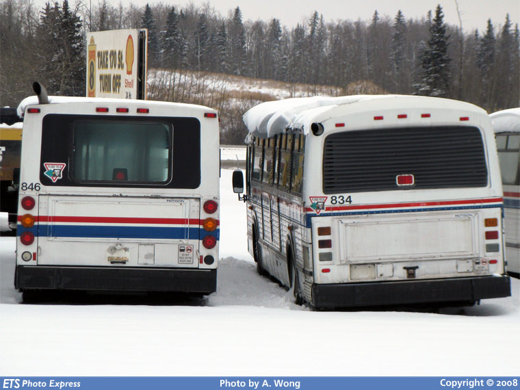 St Albert 846 and 834 are seen in a west end yard waiting to be sold.