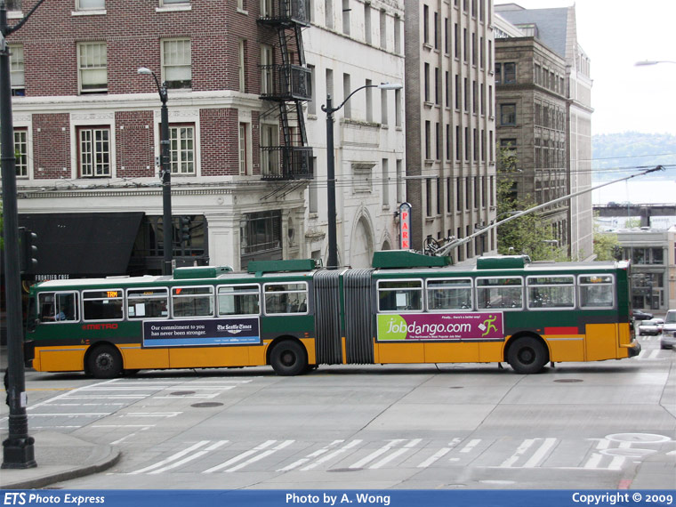 KCM 4200 is seen southbound on 3rd Avenue at Spring Street.