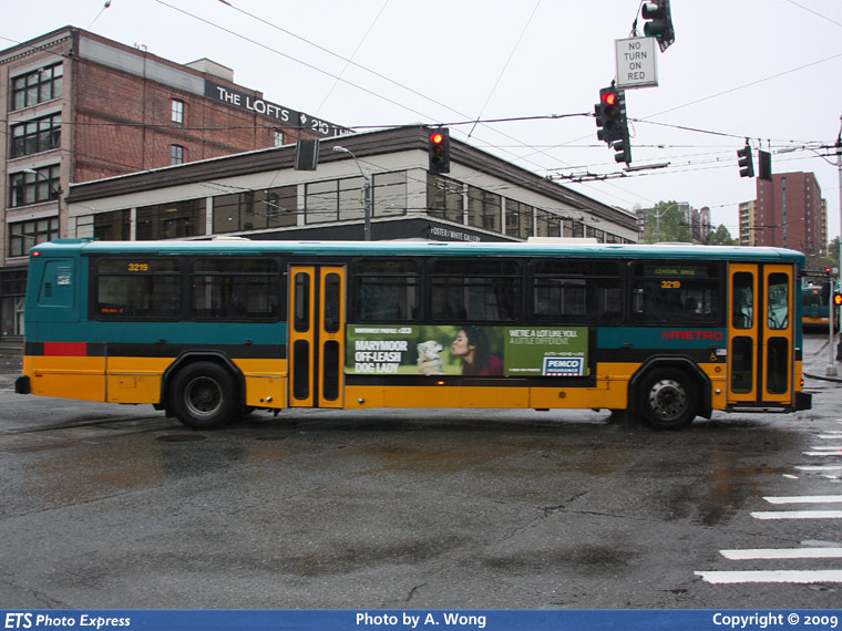 KCM 3219 is seen heading back to Central Base while southbound on 2nd Avenue at Main Street.