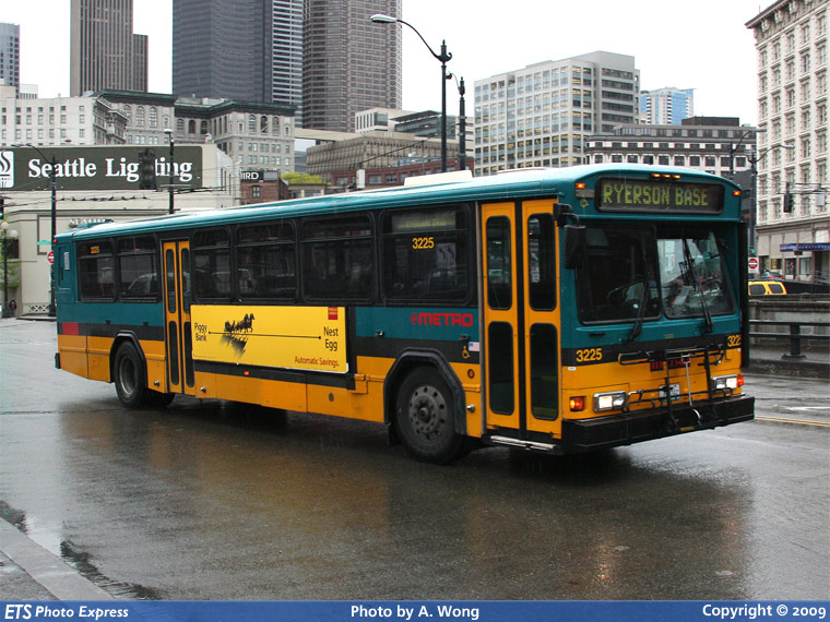 KCM 3225 is seen southbound on 2nd Avenue at Jackson Street while heading back to Ryerson Base.