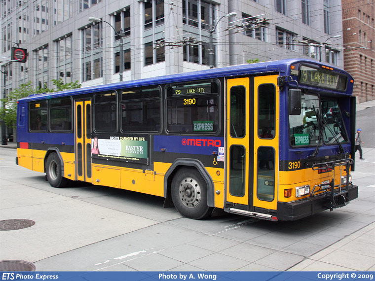 KCM 3190 is seen working route 79 Lake City while southbound on 3rd Avenue at Marion Street.