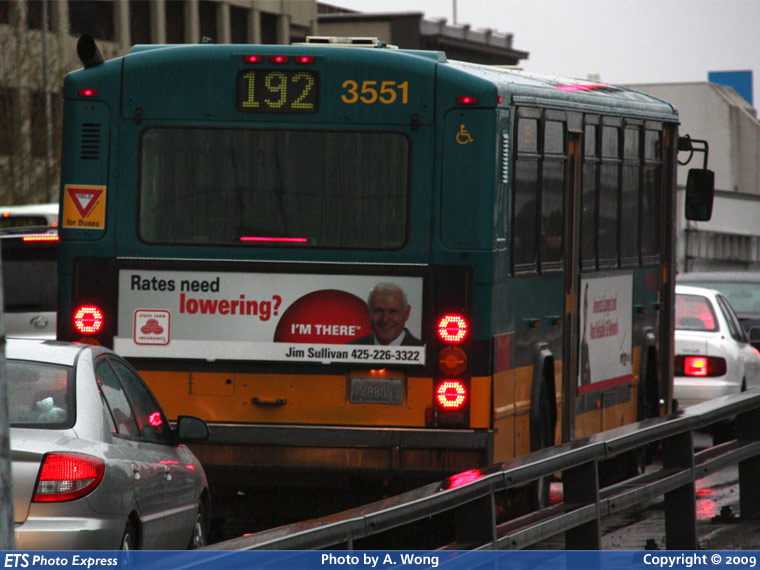 KCM 3551 is seen southbound on 4th Avenue near Weller Street while working route 192.