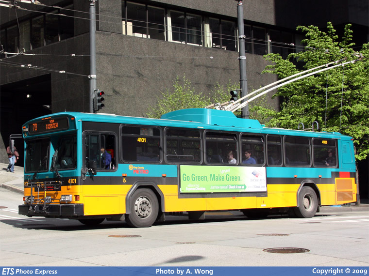 KCM 4101 is seen working route 70 while northbound on 3rd Avenue at Madison Street.