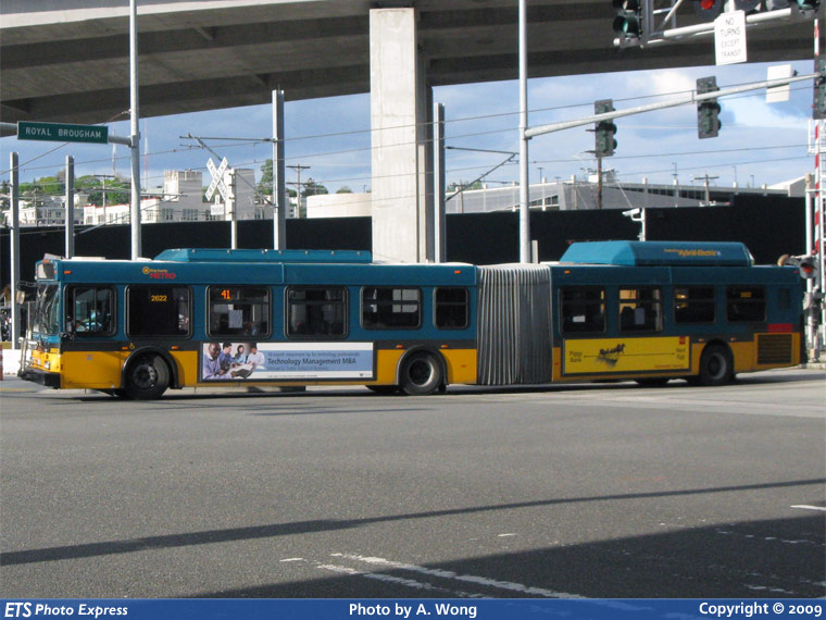 KCM 2622 is seen working route 41, about to enter the Seattle Transit Tunnel from Royal Brougham Way.