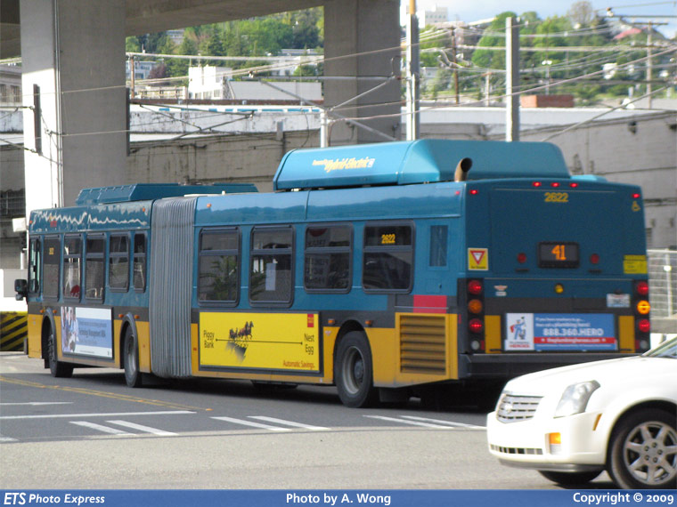 KCM 2622 is seen working route 41, about to enter the Seattle Transit Tunnel from Royal Brougham Way.