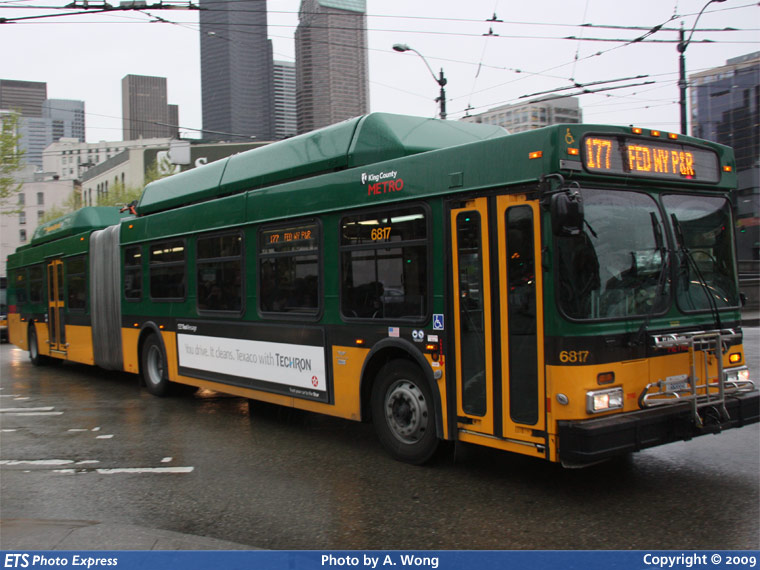 KCM 6817 is seen southbound on 2nd Avenue at Jackson Street while working route 177.
