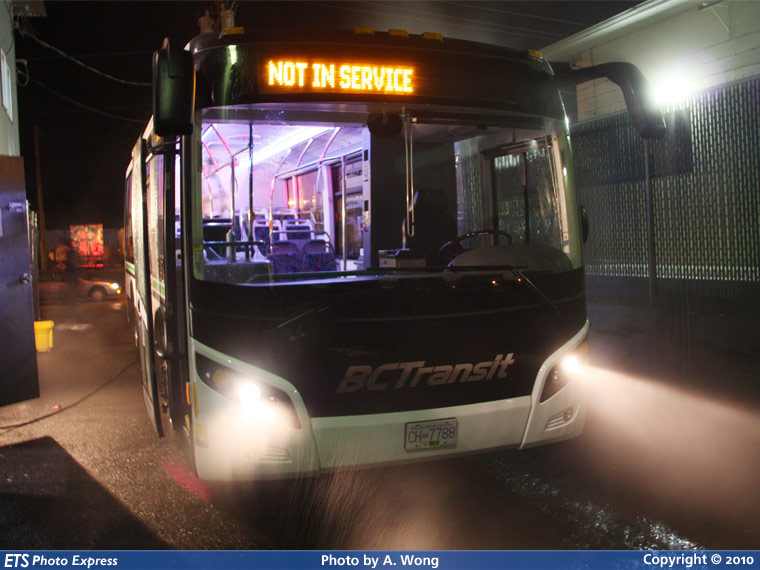 The BC Transit Yaxing bus is seen getting washed down at the Squamish Transit shops. |