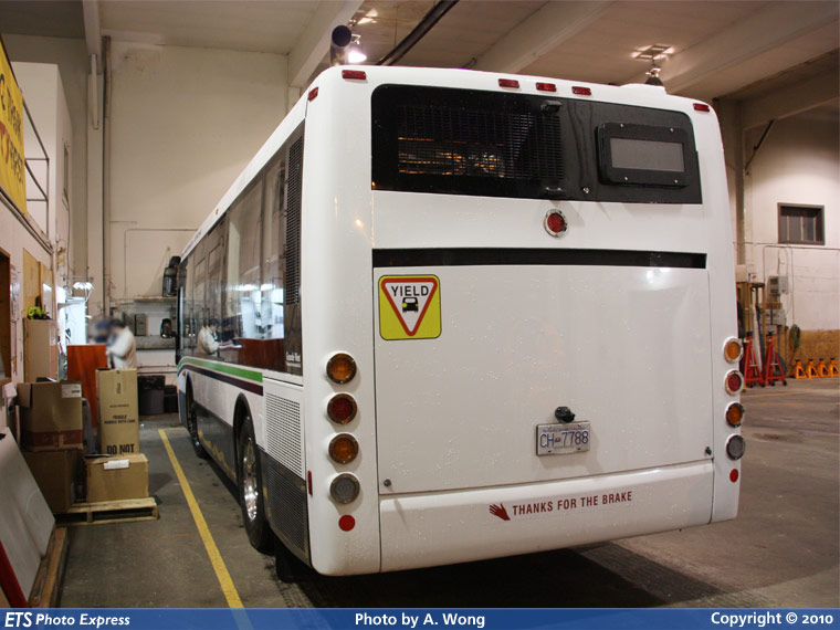 The BC Transit Yaxing bus is seen parked inside the Squamish Transit shops. |