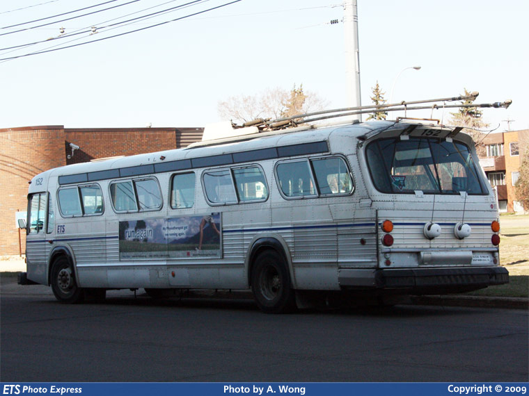 ETS 152, the last trolleybus to run in service, is seen parked at Westwood Garage. |