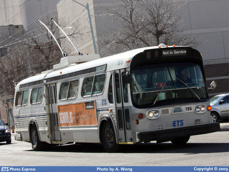 ETS 195 is seen turning from 102 Avenue onto 97 Street northbound, following 202 before its final run to the garage. |
