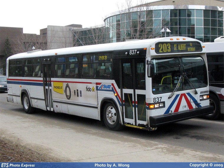 St Albert 837 is seen on 112 Street at 87 Avenue departing University Transit Centre while working route 203.
