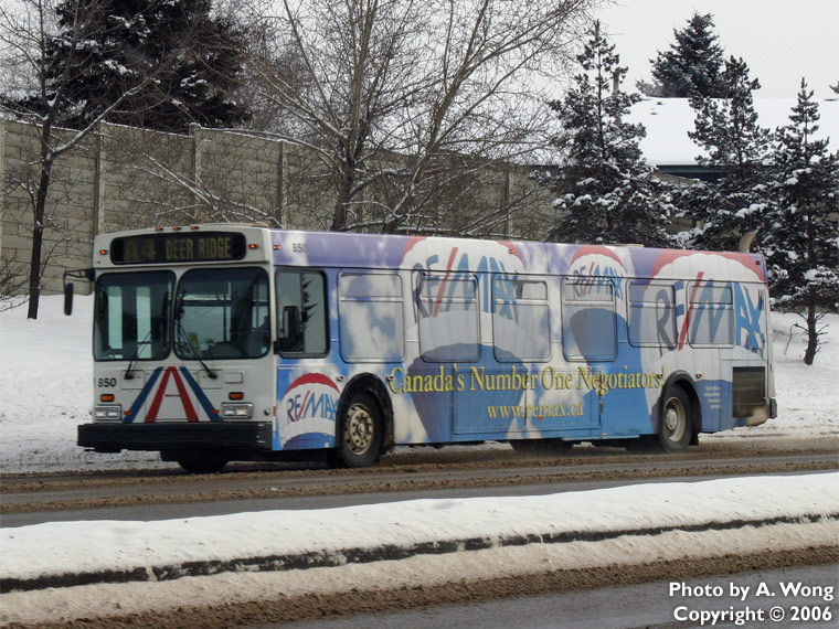 St Albert 850 is seen northbound on St Albert Road while working route A4 Deer Ridge.
