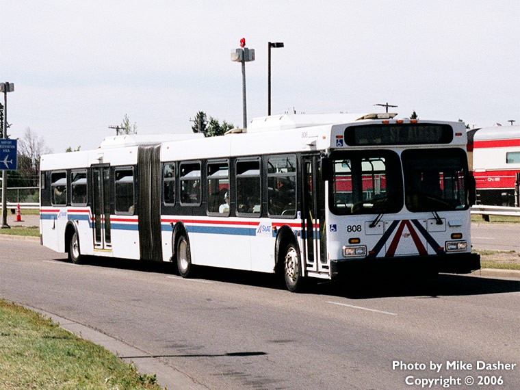 St Albert 808 is seen at 121 Avenue south of Yellowhaed Trail while working Park and Ride service from the Edmonton City Centre Airport during the 2006 Edmonton Grand Prix.