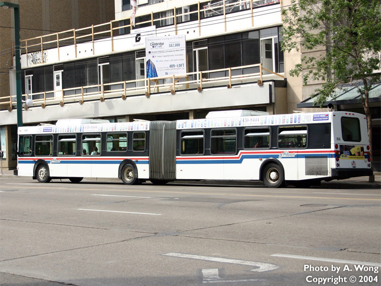St Albert 808 is seen westbound on Jasper Avenue near 100 Street.