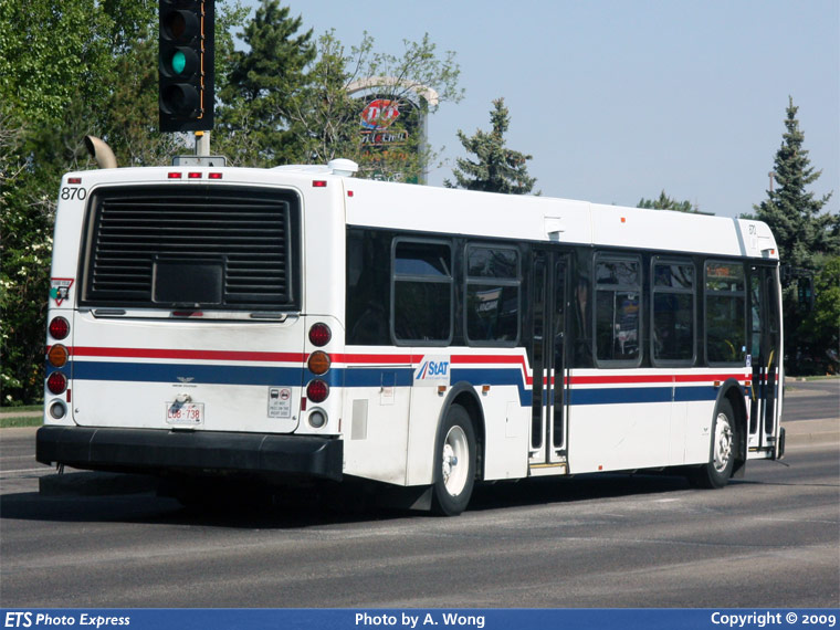 St Albert 870 is seen northbound on St Albert Road at River Crest Crescent.