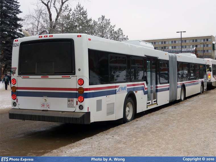 St Albert 824 is seen on one of its first days in service working route 203 while waiting for passengers at University Transit Centre.