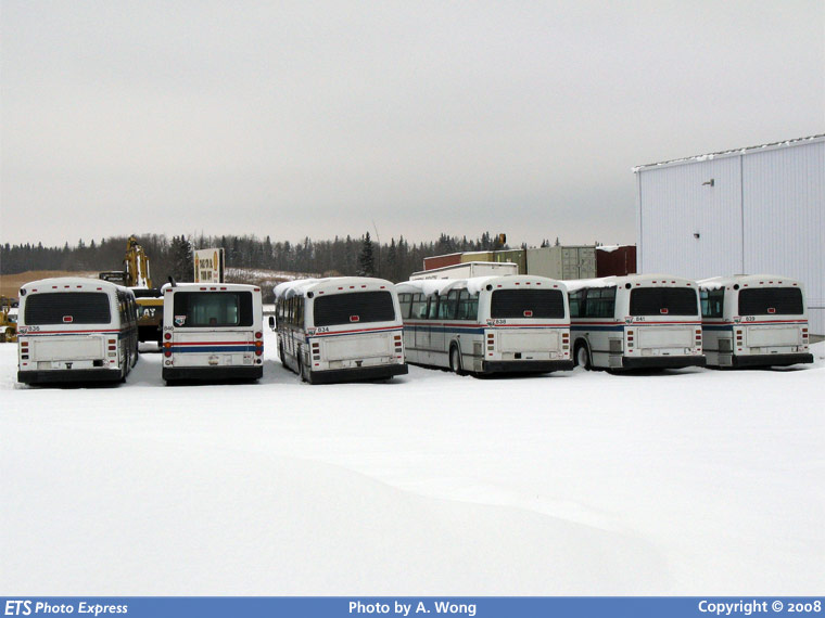 A group of retired St Albert Classics and a D40LF are seen in a west end yard waiting to be sold.