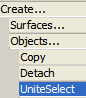 Just press OK after the dialogue box comes up. The next step is to switch to Vertices Level. After you have done so, go to the Select>Quadr tool, with Create>Objects>UniteSelect still selected as well. Your objects menu should currently have only one object listed in it (unless you have other parts).